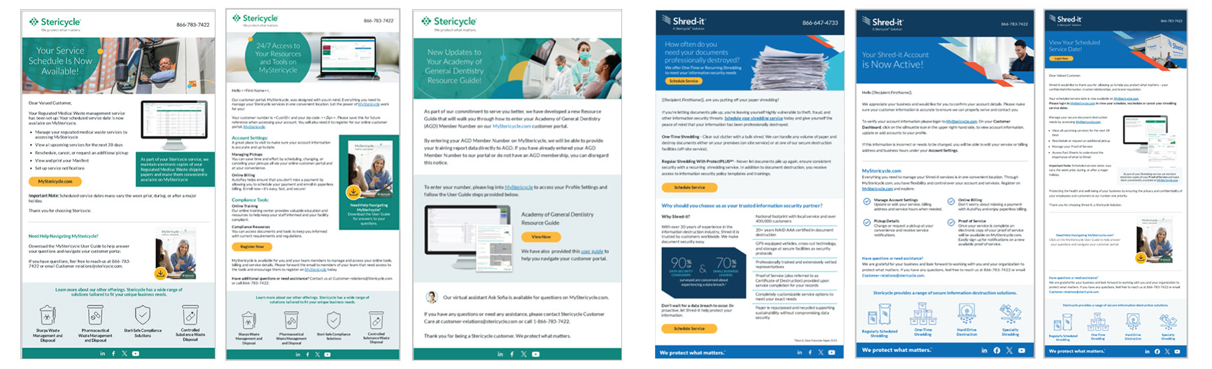 Over 30 years, Stericycle’s brand became fragmented and unclear due to acquisitions, divestitures, and multiple service lines. Teams operated with different, self-created standards, leading to inconsistent messaging, visuals, and inefficiencies across marketing, product, and operational communications—ultimately reducing brand clarity and impact within a highly regulated healthcare environment.